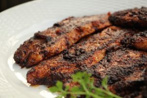 so they are no more than 1/2-inch thick. In a large shallow dish, combine paprika, garlic powder, salt, black pepper, cayenne, thyme, and oregano.Pour the melted butter in another large, shallow dish. Heat a large cast iron skillet over high heat for 7-10 minutes, or until white hot. Add oil to the pan, dip each fillet in butter, then dredge in seasoning. Add the fillets to hot pan and cook 2